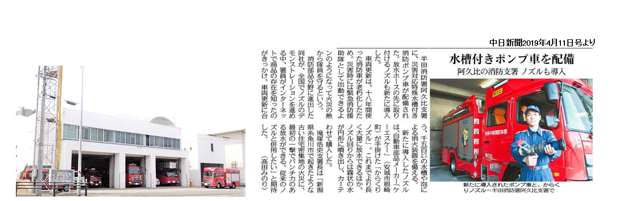 延焼もあり、もしこのノズルがその時消防車に積んであれば、それを使って大きな消火効果があり、延焼も少しでも止められたんじゃないかなと思います。