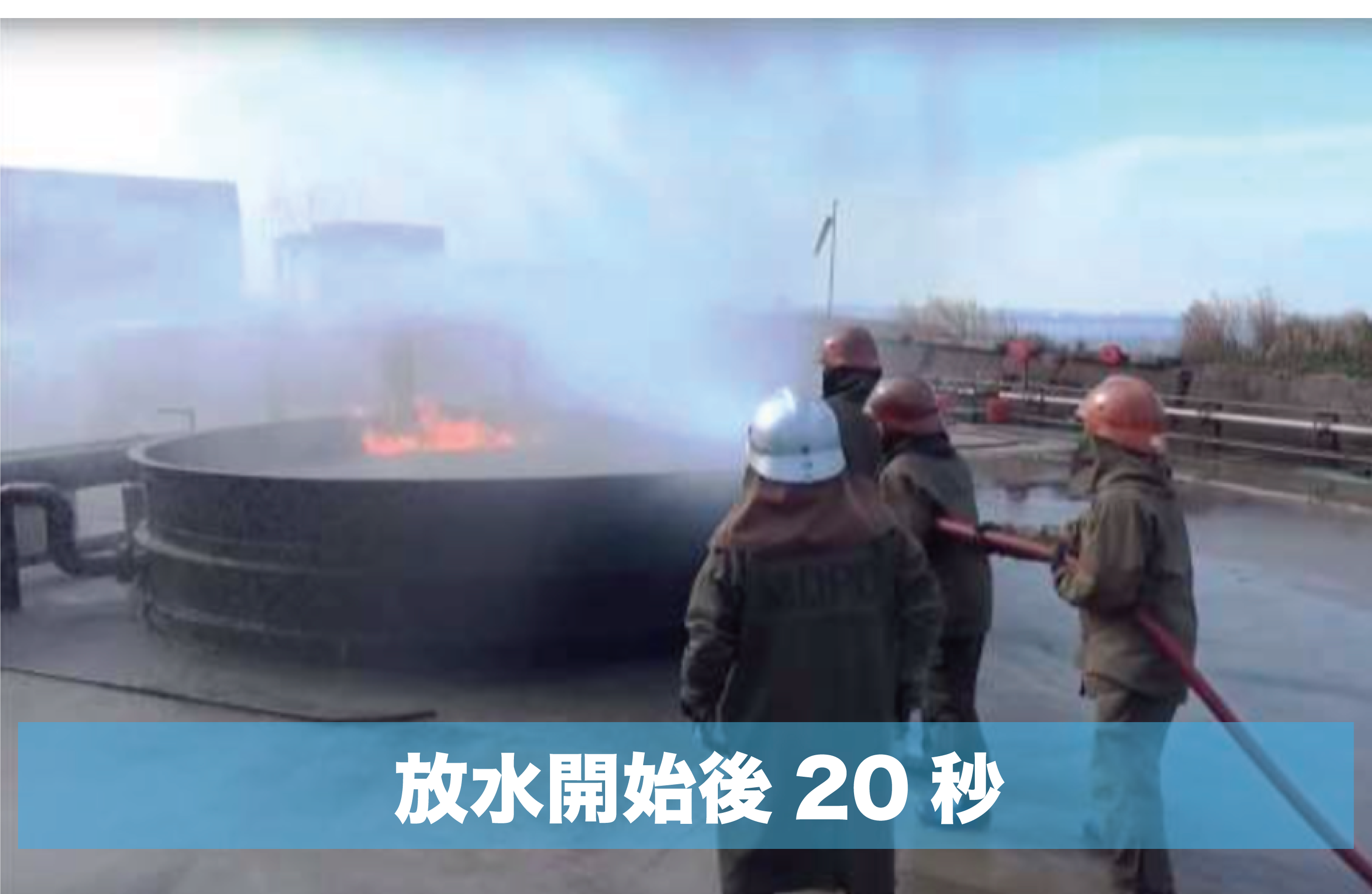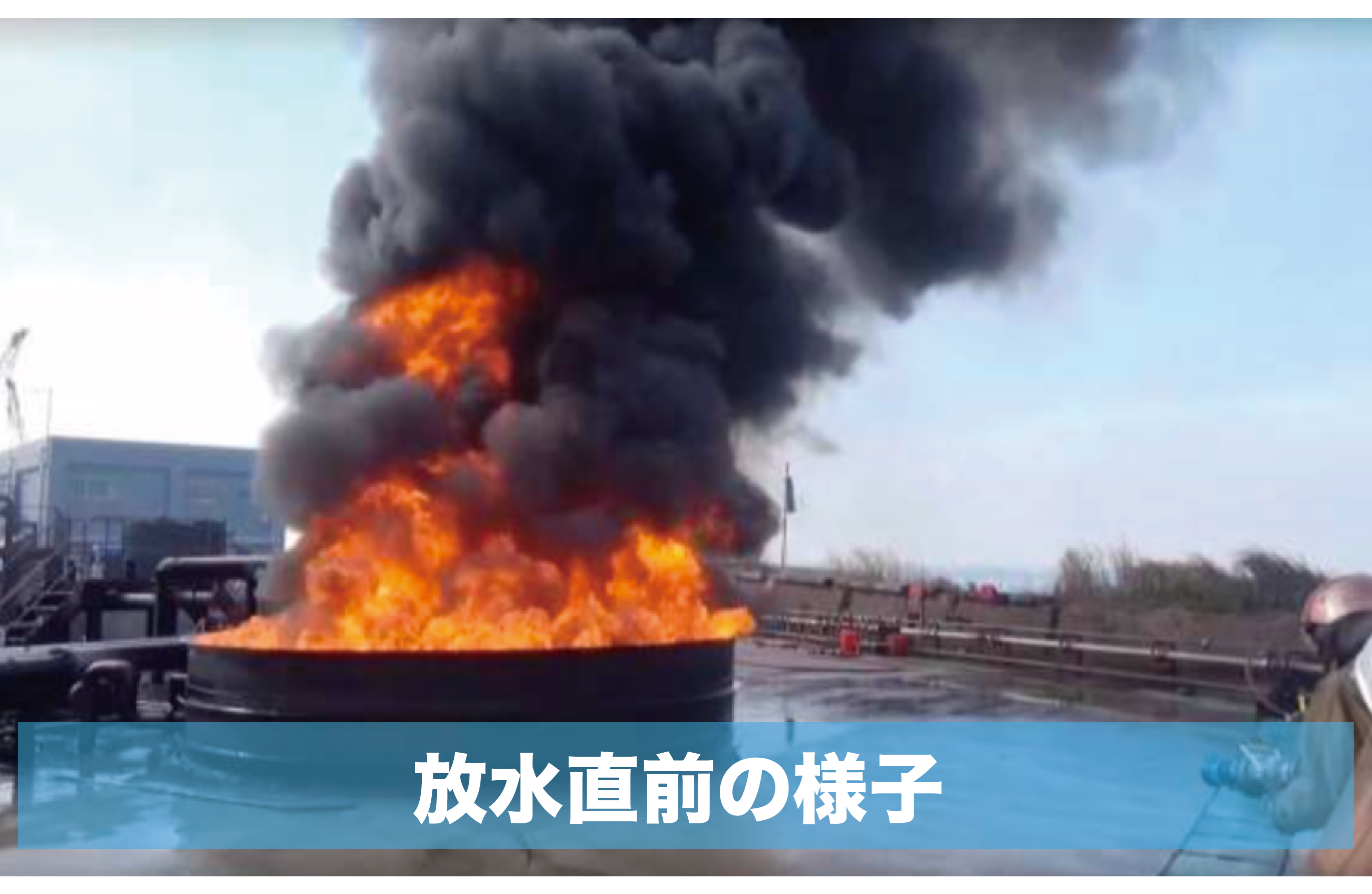 コンビナート油火災を想定した訓練所にて消火訓練を行った。金子富夫氏(元東京消防庁消防隊長)が考案された 振り回し放水消火法を実施、放水開始から約25秒で鎮火を確認しました。