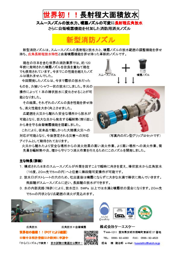 世界待望の消防用消火ノズルが、80年の時を経て堂々の完成。
