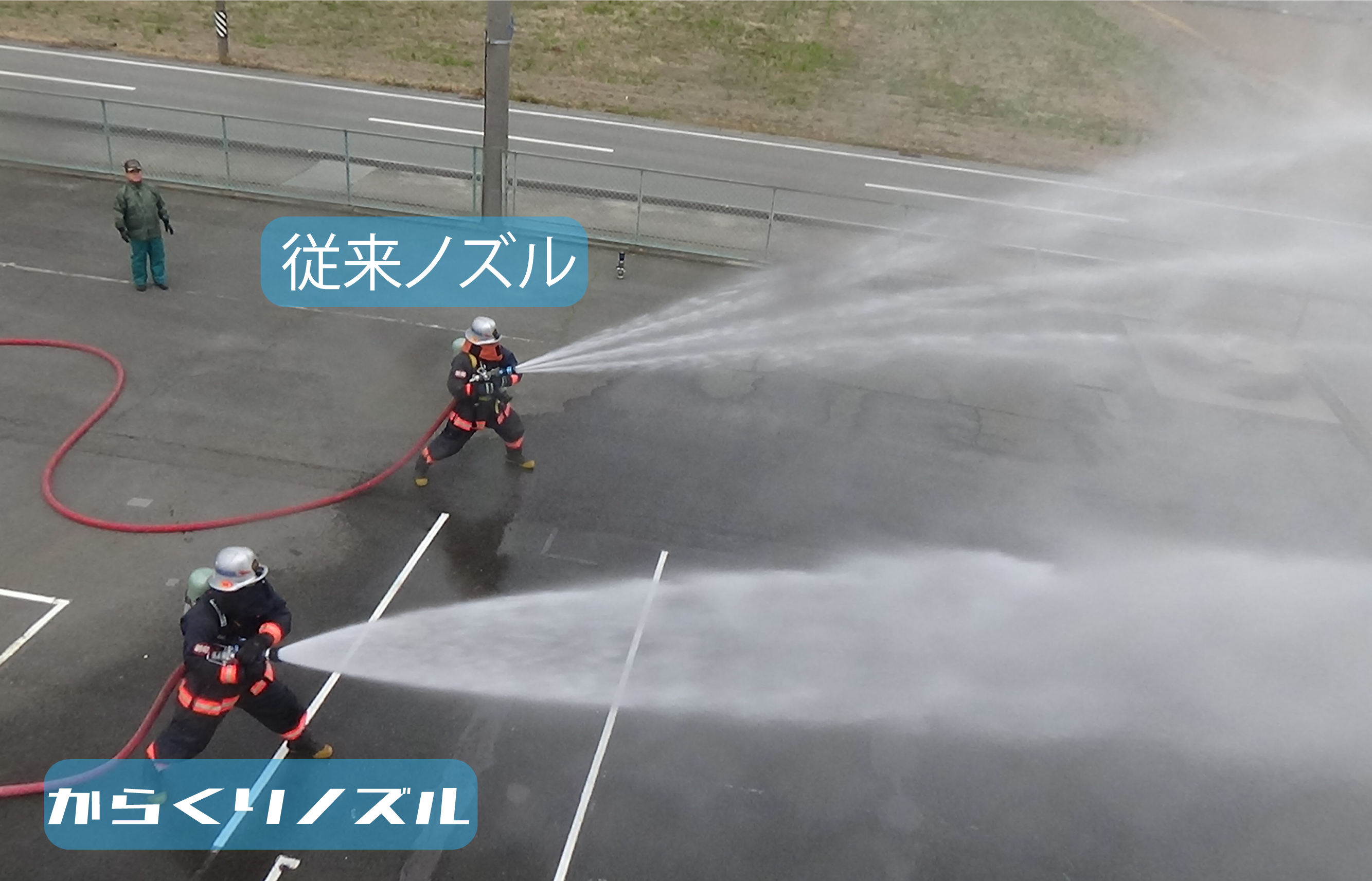 つまり、龍神ノズルは遠距離からの消火作業を実現できるため、